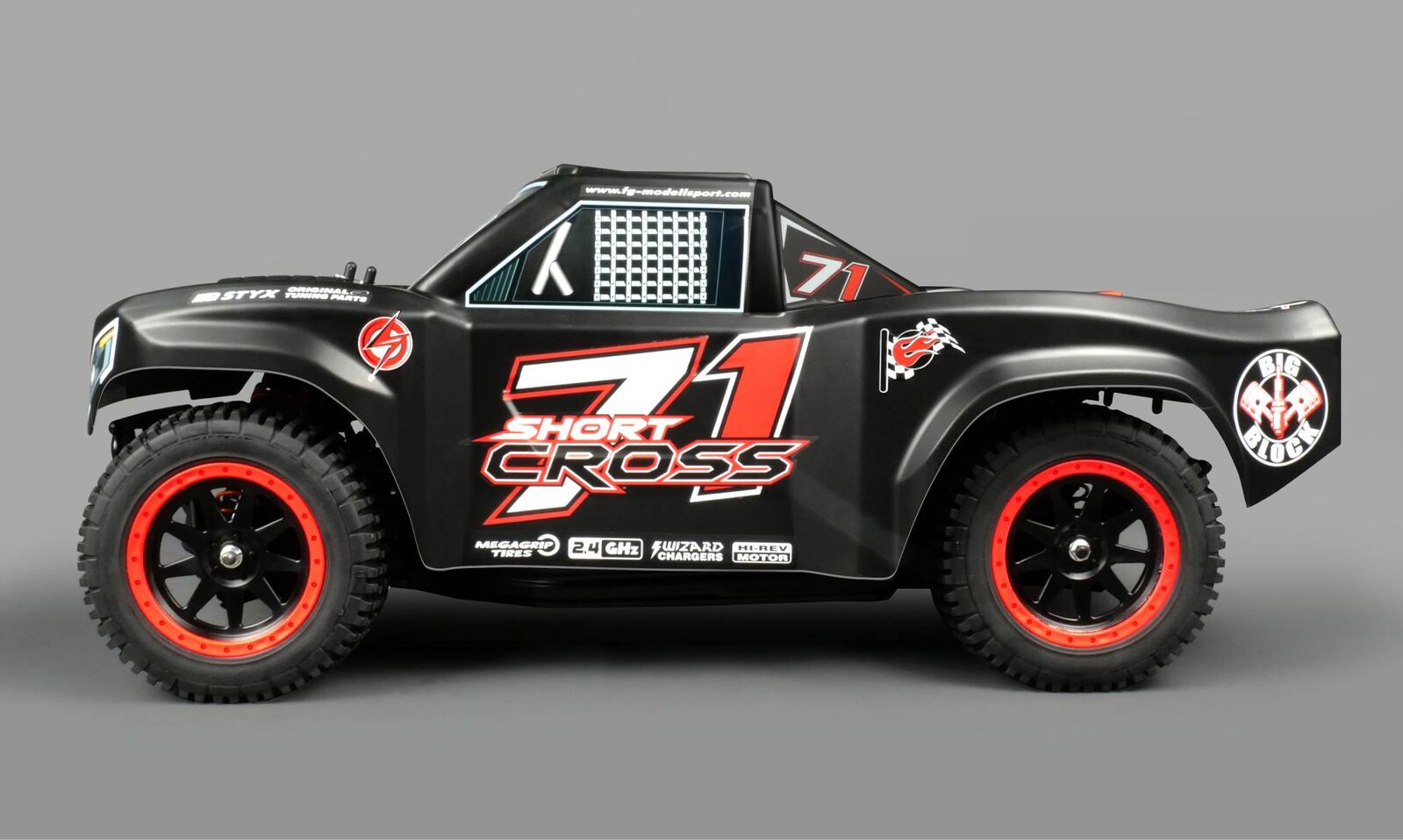 Pro-trucks or short courses are becoming increasingly popular in the world of motor racing. They're monstrous, powerful cars with long travels that make for spectacular group racing. Our “Short Cross” is fitted with reliable mechanics, stiffeners and protective mudguards. A conversion kit is also available to convert your Short Cross 2WD into a 4WD. Very detailed polycarbonate bodywork. The standard version comes with motor and controller only. It is recommended to use 2x 3S 10000 mAh 100c Li-Po batteries.